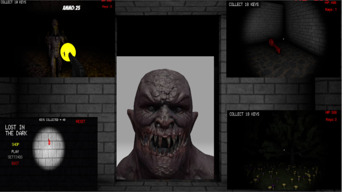 You are in a Dark maze WITH MONSTERS, where your only source of light is your flashlight! Try to find and Collect 18 keys to try and Escape that Scary maze and, most importantly,