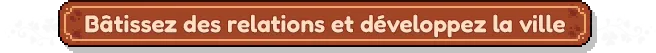 Faites la connaissance de voisins charmants, organisez des évènements chaleureux et aidez les cœurs solitaires à se trouver ! À mesure que vos liens avec les habitants se renforceront, vous pourrez élever le classement urbain afin de débloquer de nouveaux magasins et améliorations, et rendre le village encore plus vivant ! 🌿