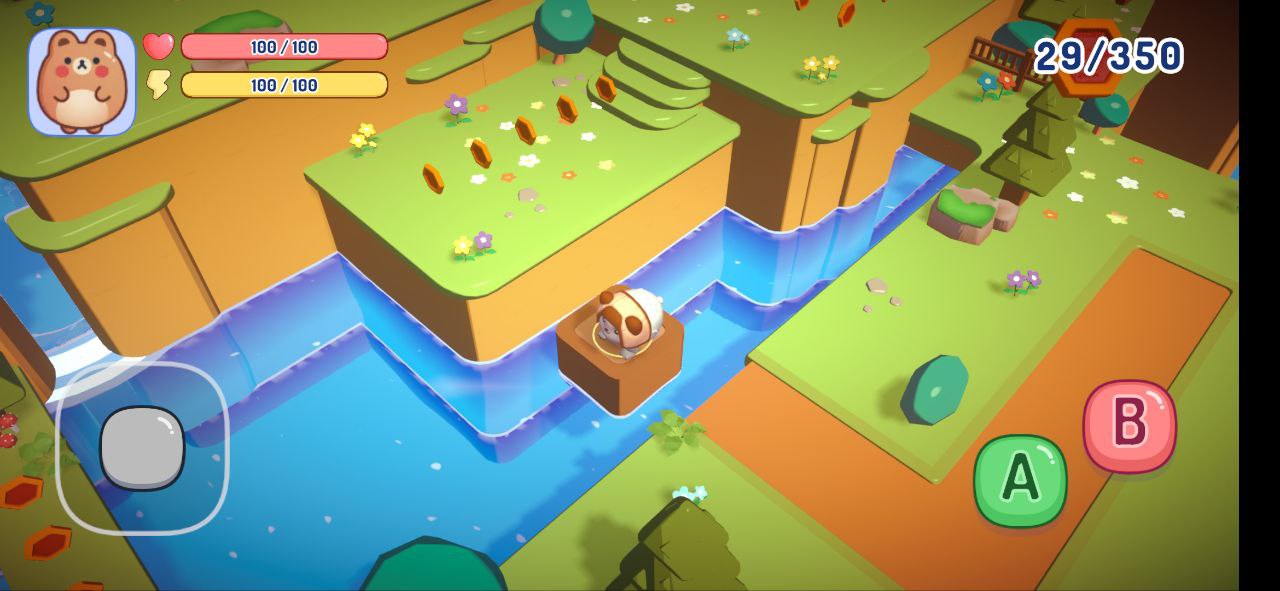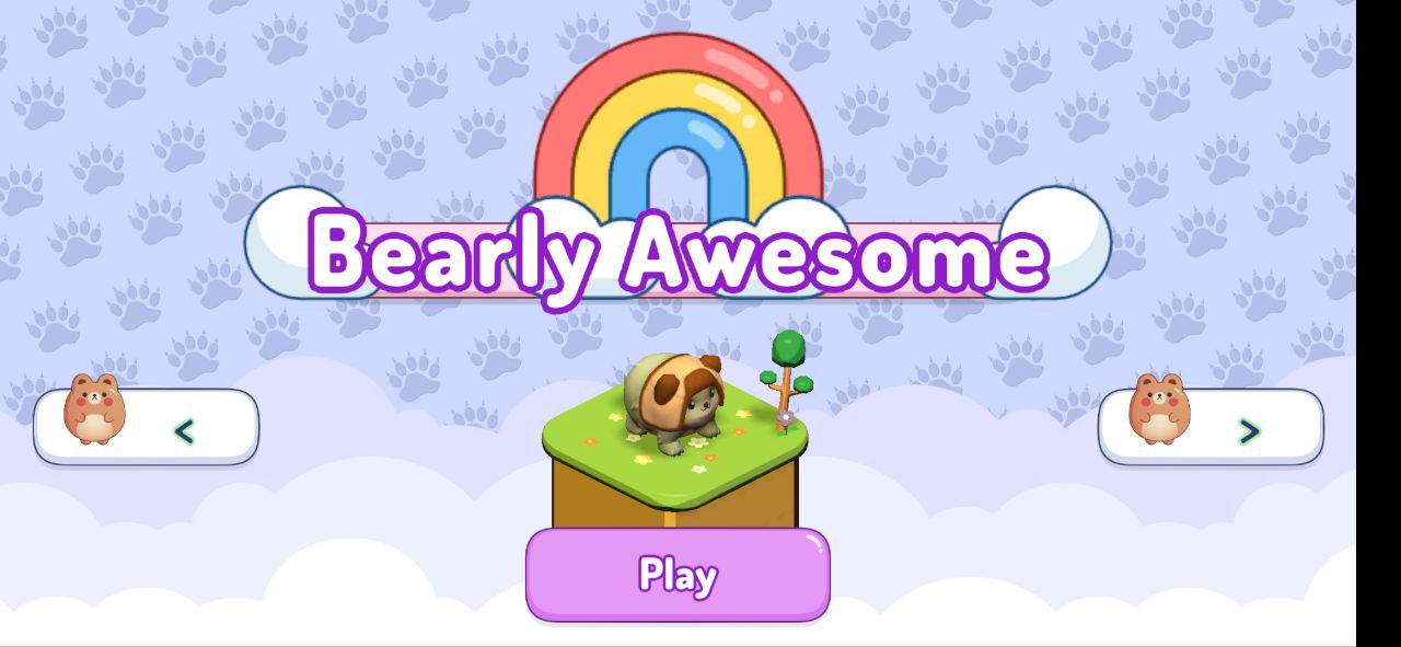 3 playable levels and 6 available bearlies (bear avatars) to choose from to traverse the levels with. Only walk, run and belly bump attack functionalities are available in the MVP. Running depletes your energy bar and you need to wait for it to replenish before being able to run again.