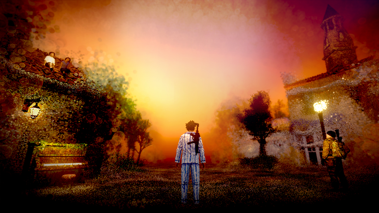 A third-person exploration game built around the philosophical theme, “No Creation Without Destruction.” Rather than destroying objects by shooting, your shots materialize and create the world. Take your time in the world you create and discover mysterious characters and objects.