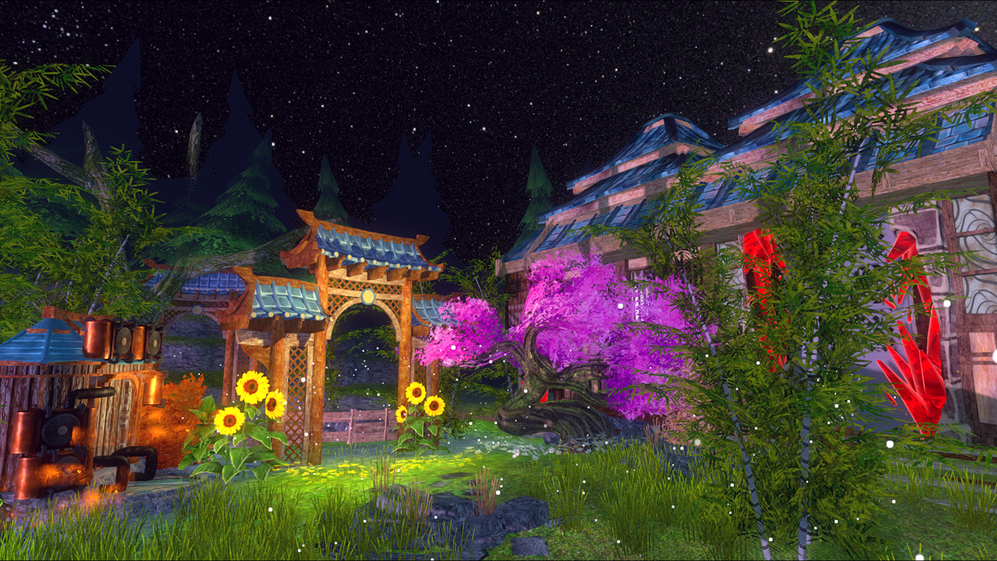 Personalise your space using robust tools which let you easily move, rotate, scale, snap, and clear items. Acquire enough Karma to unlock fancy decorations, as well as utilities which allow you to change the time of day, clear the map to start fresh, and fine-tune your environment to suit your creativity. Use design templates to freely rotate between custom designs, and share them with fellow Jade Spring players.