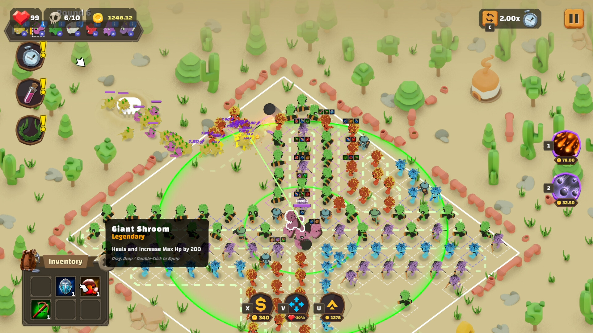 • Merge Towers - Merge same towers to upgrade and choose a random rune of stats acquire.