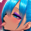 The "Queen of Killing Hundreds" has a sky-blue side ponytail against her healthy bronze skin, and wears a vulgar modified JK uniform.