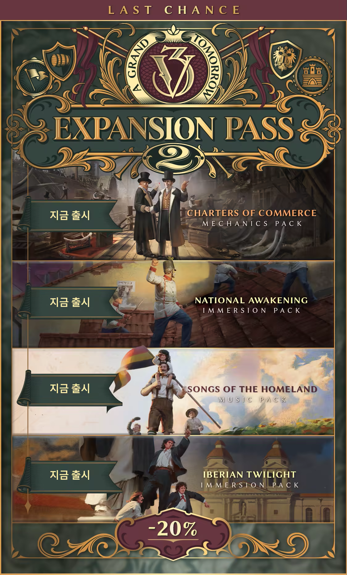 빅토리아 시대의 변화무쌍한 세상으로 들어오십시오. 대담한 국민 정체성이 드러나고 현대주의가 힘을 얻는 시대에 몰입하며 진정한 국제 시대의 탄생을 목격하십시오. 이 생생한 음악 팩에는 다음 기능이 있습니다.