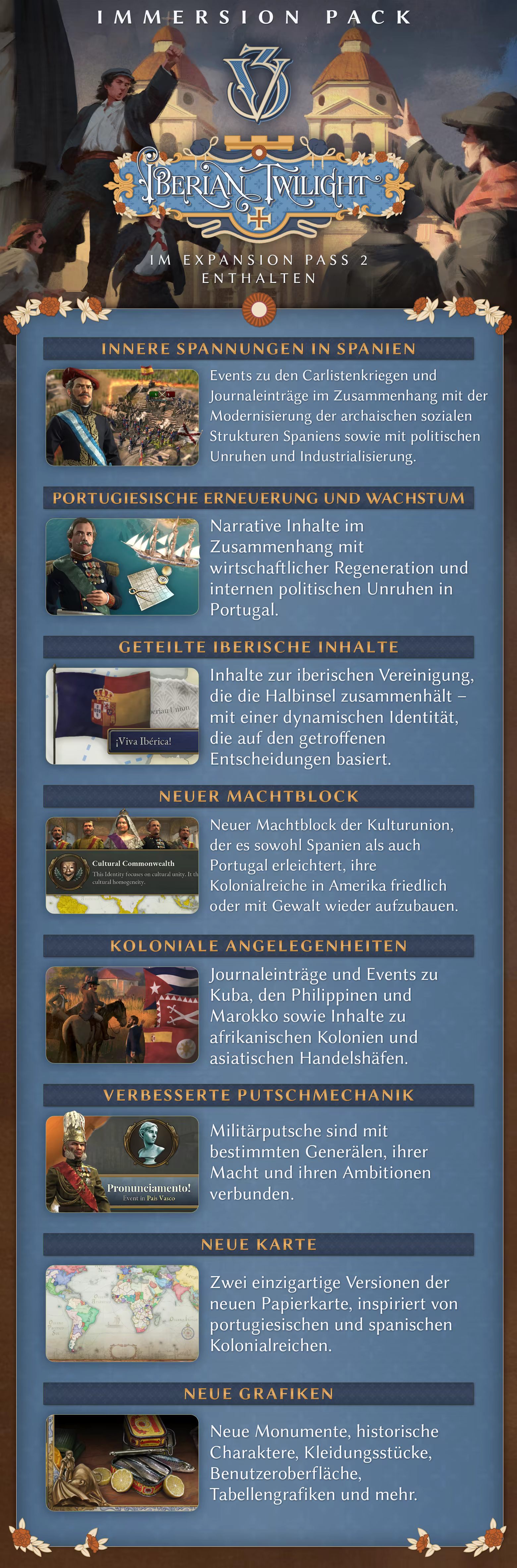 Victoria 3: Iberian Twilight hat folgende neue Inhalte:
