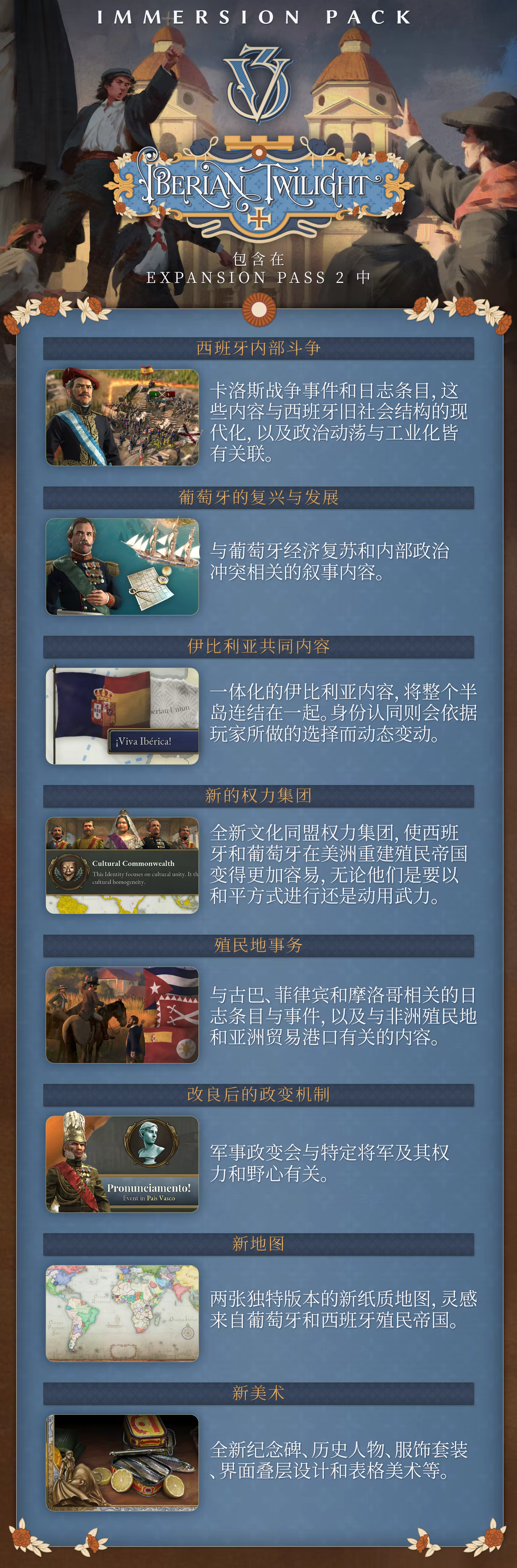 Victoria 3: Iberian Twilight包含以下新内容: