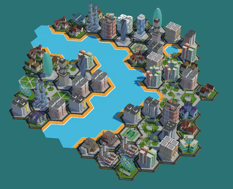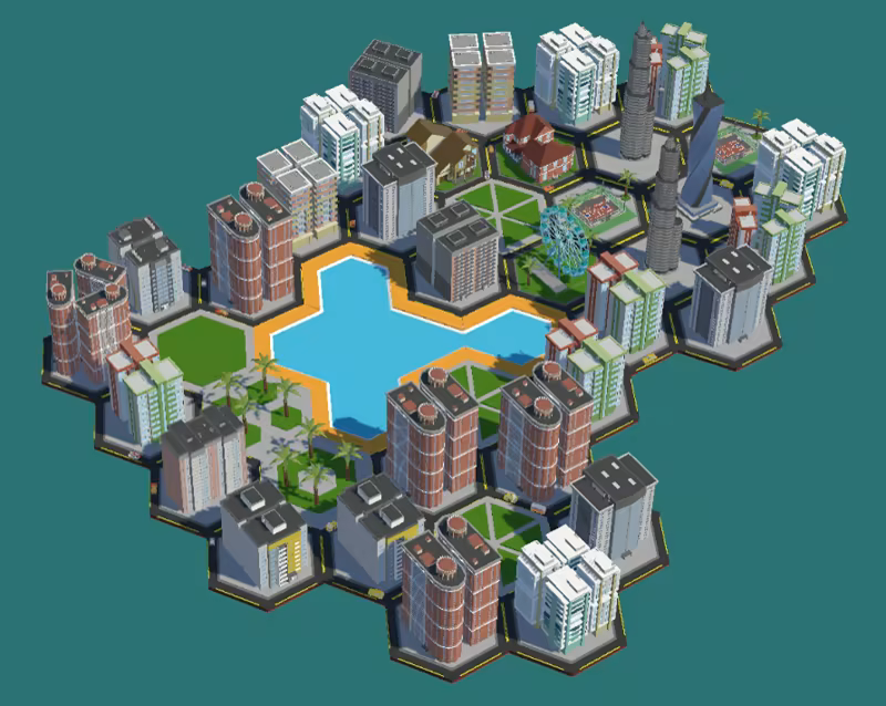 HexaUrbs is a minimalistic city builder where you can place variety of tiles to create beautiful city within minutes without worrying about any kind of resource management.