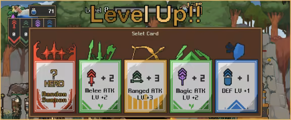 You are a 'summoner' who summons warriors and heroes to battle. You can choose warriors to battle upon the field using 'mana.' Also, if you level up, you may choose to summon a powerful hero or upgrade an existing hero.