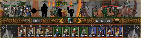 A real-time strategy simulation set in a medieval fantasy world where you can summon warriors and heroes to fight. 2D side-scrolling pixel game