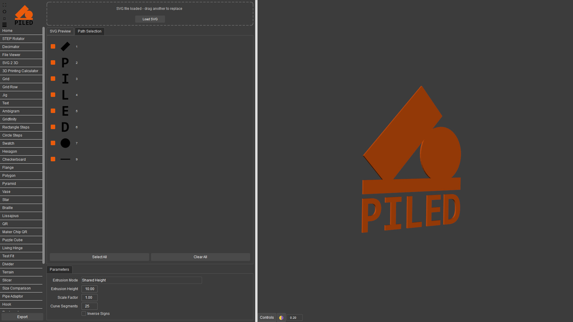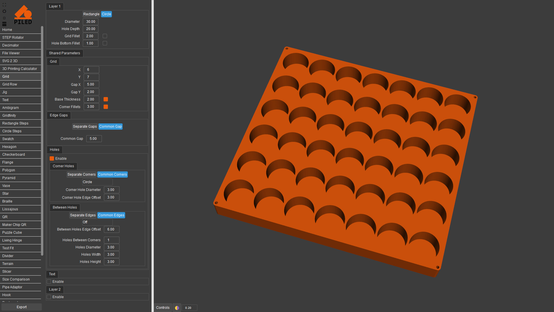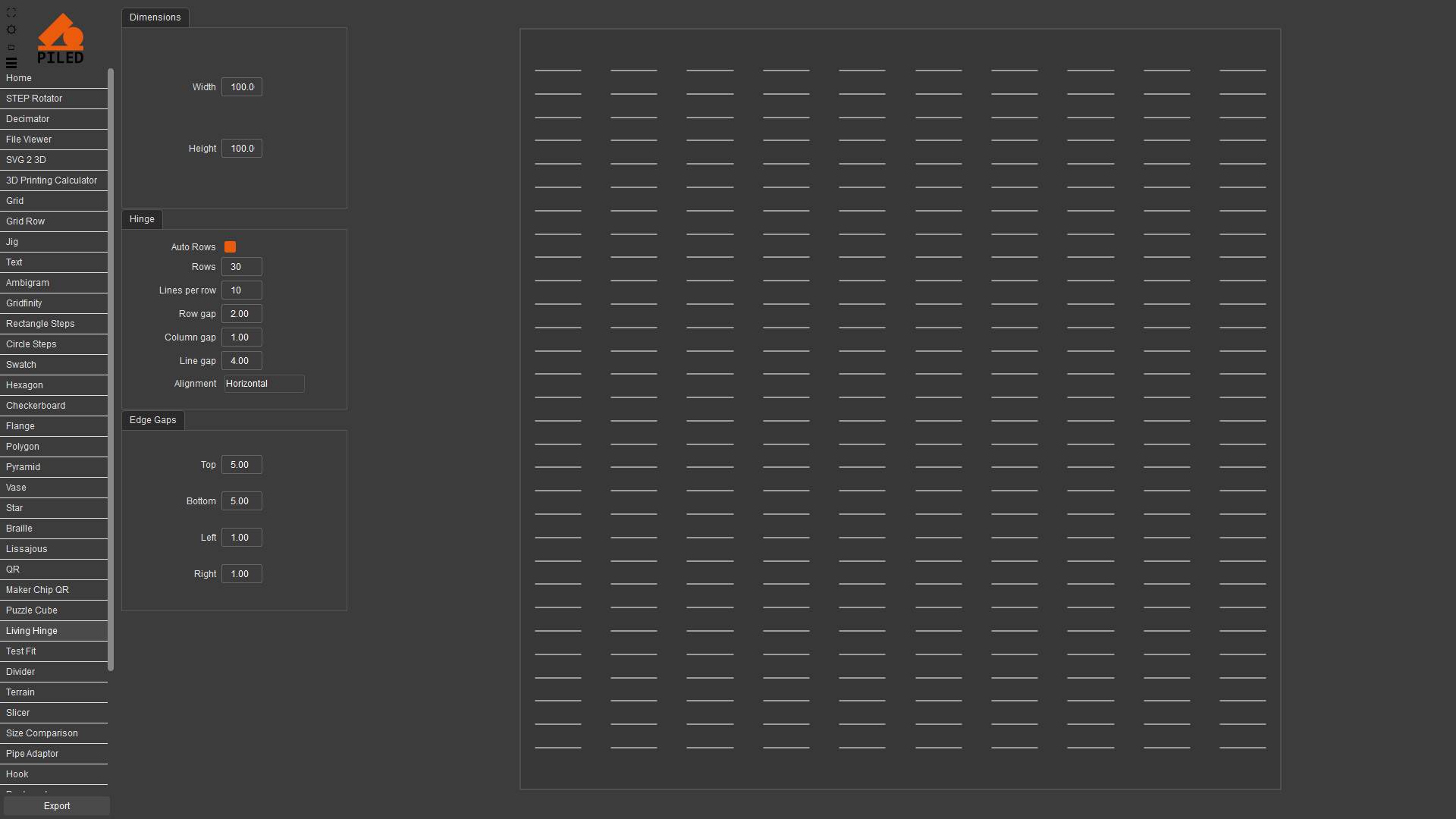 Quickly create complex models then export as STEP, STL & DXF. 3D print, CNC or laser cut your designs made by a wide variety of generators including grid, QR code, vase, living hinge and more.