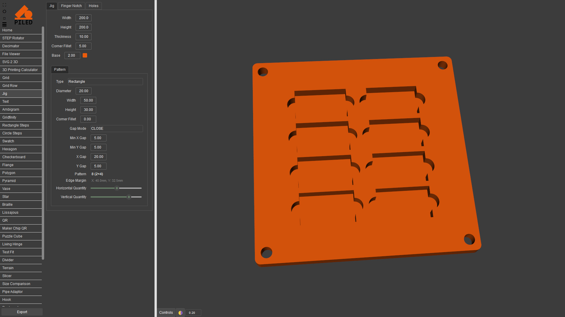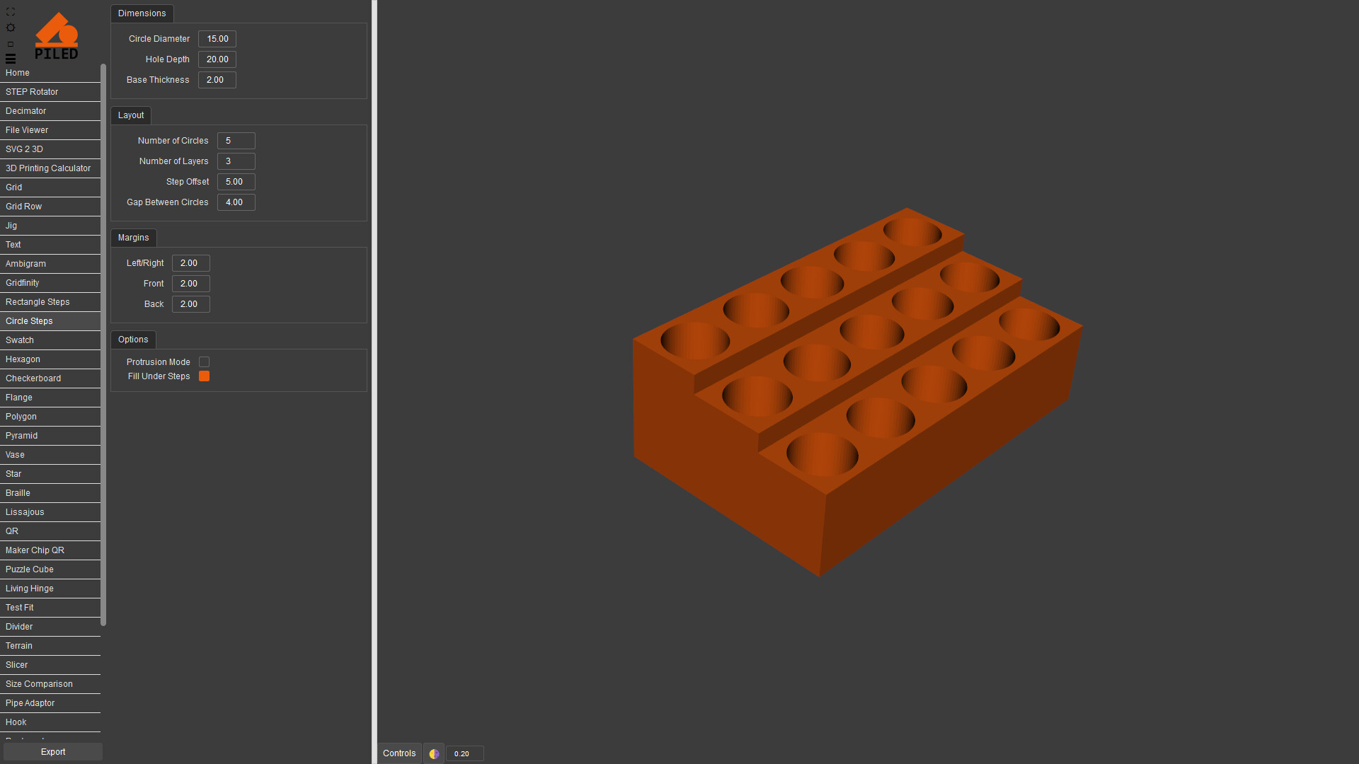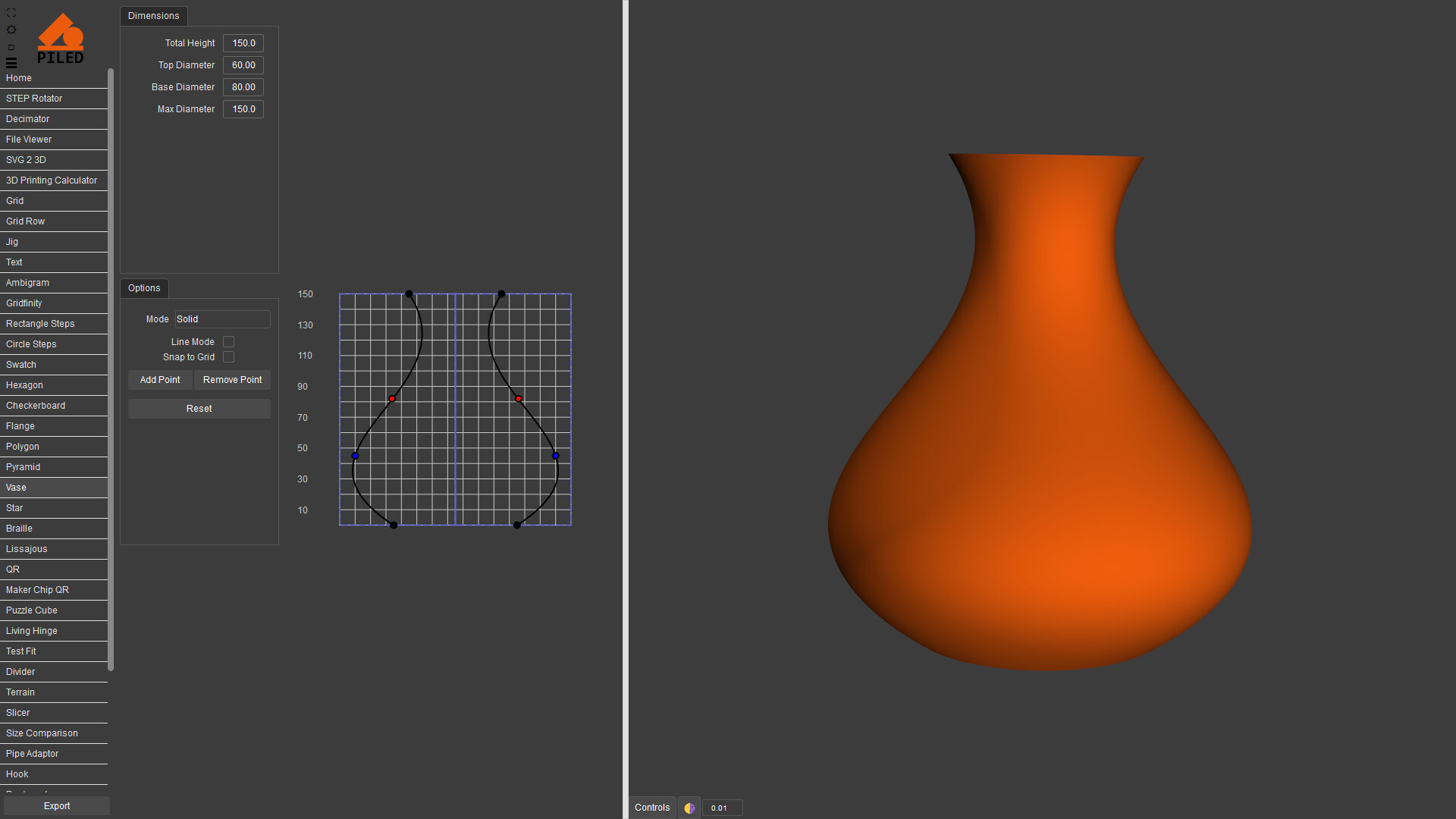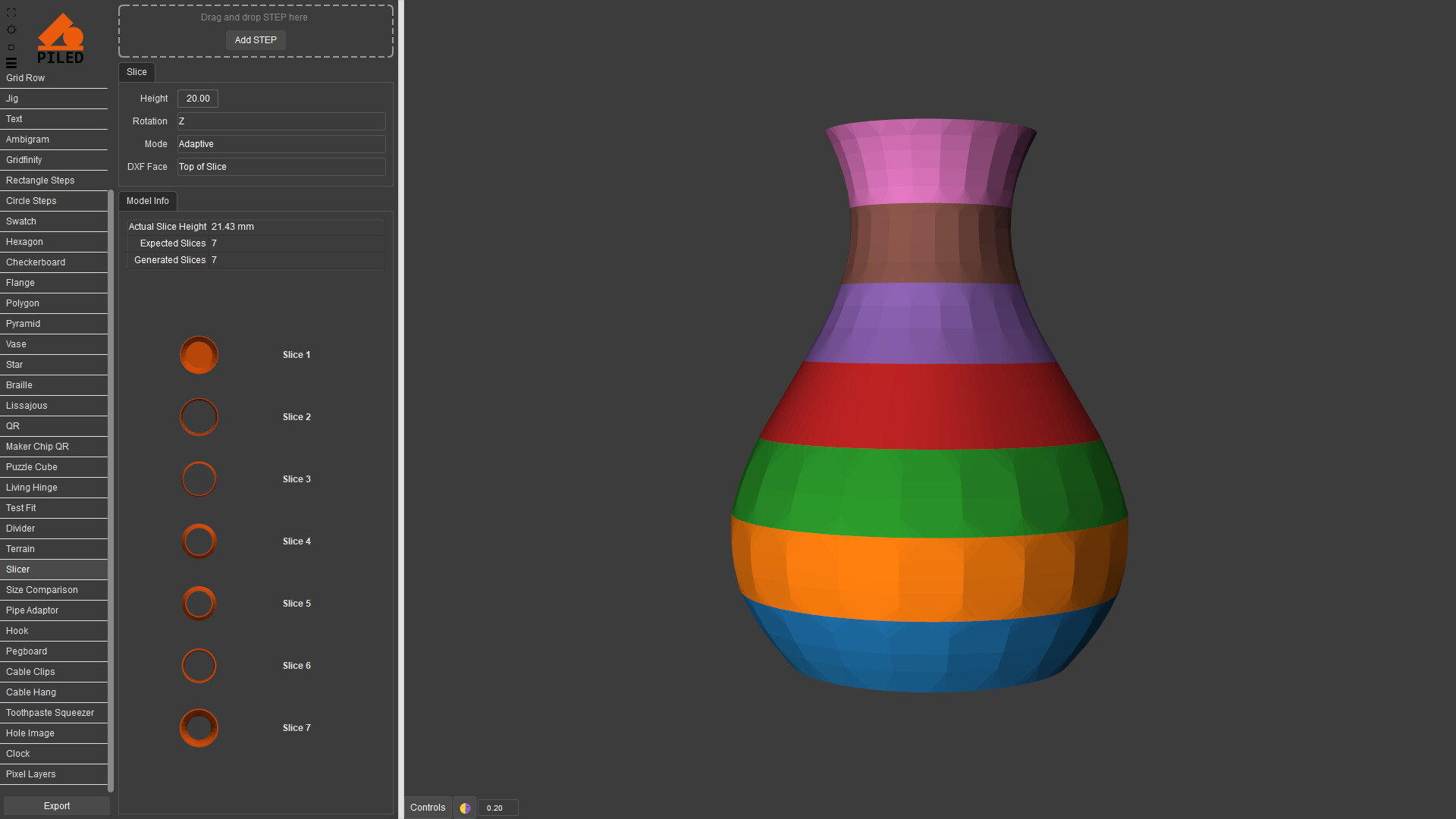 Quickly create complex models then export as STEP, STL & DXF. 3D print, CNC or laser cut your designs made by a wide variety of generators including grid, QR code, vase, living hinge and more.