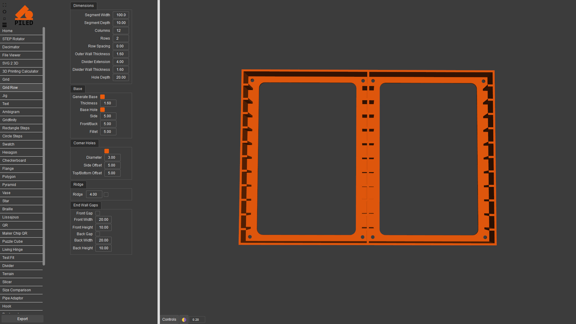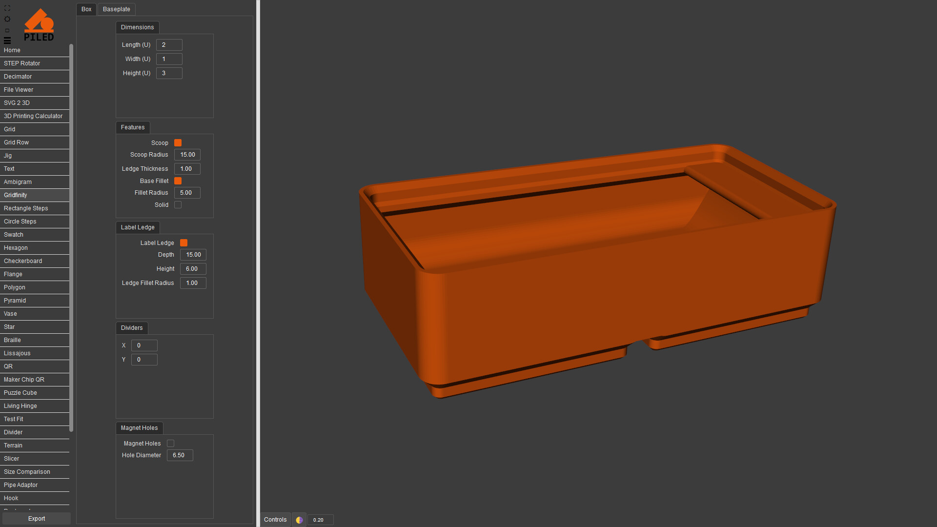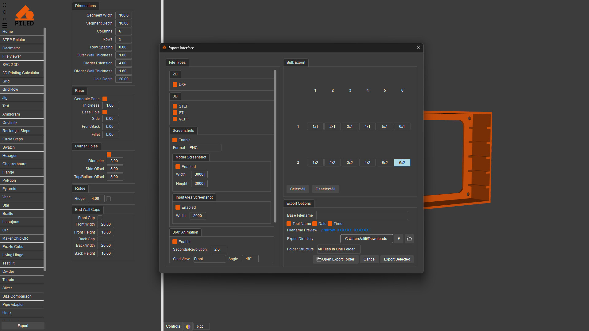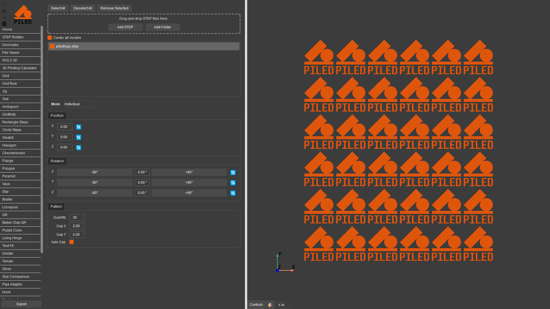 Quickly create complex models then export as STEP, STL & DXF. 3D print, CNC or laser cut your designs made by a wide variety of generators including grid, QR code, vase, living hinge and more.