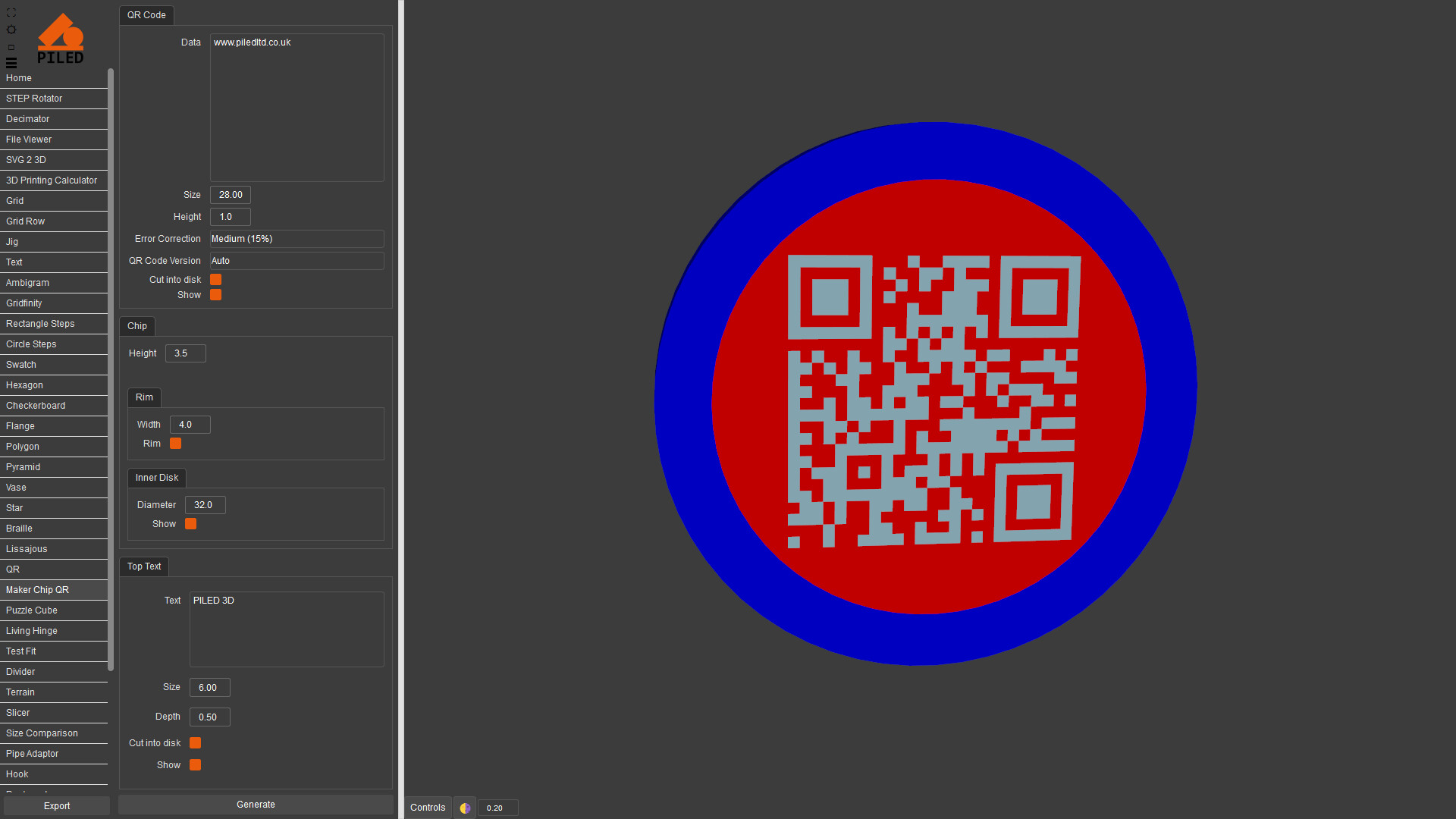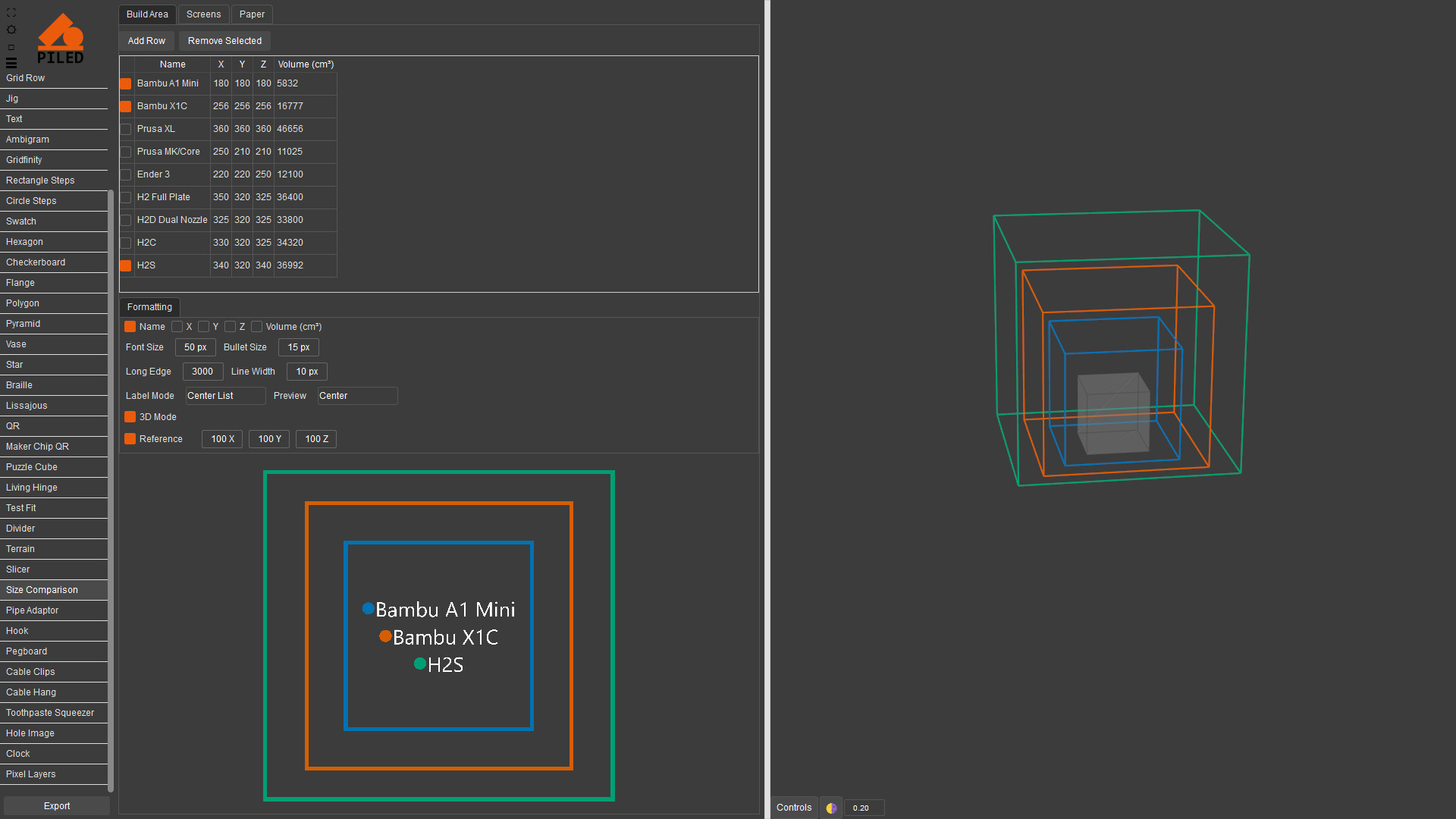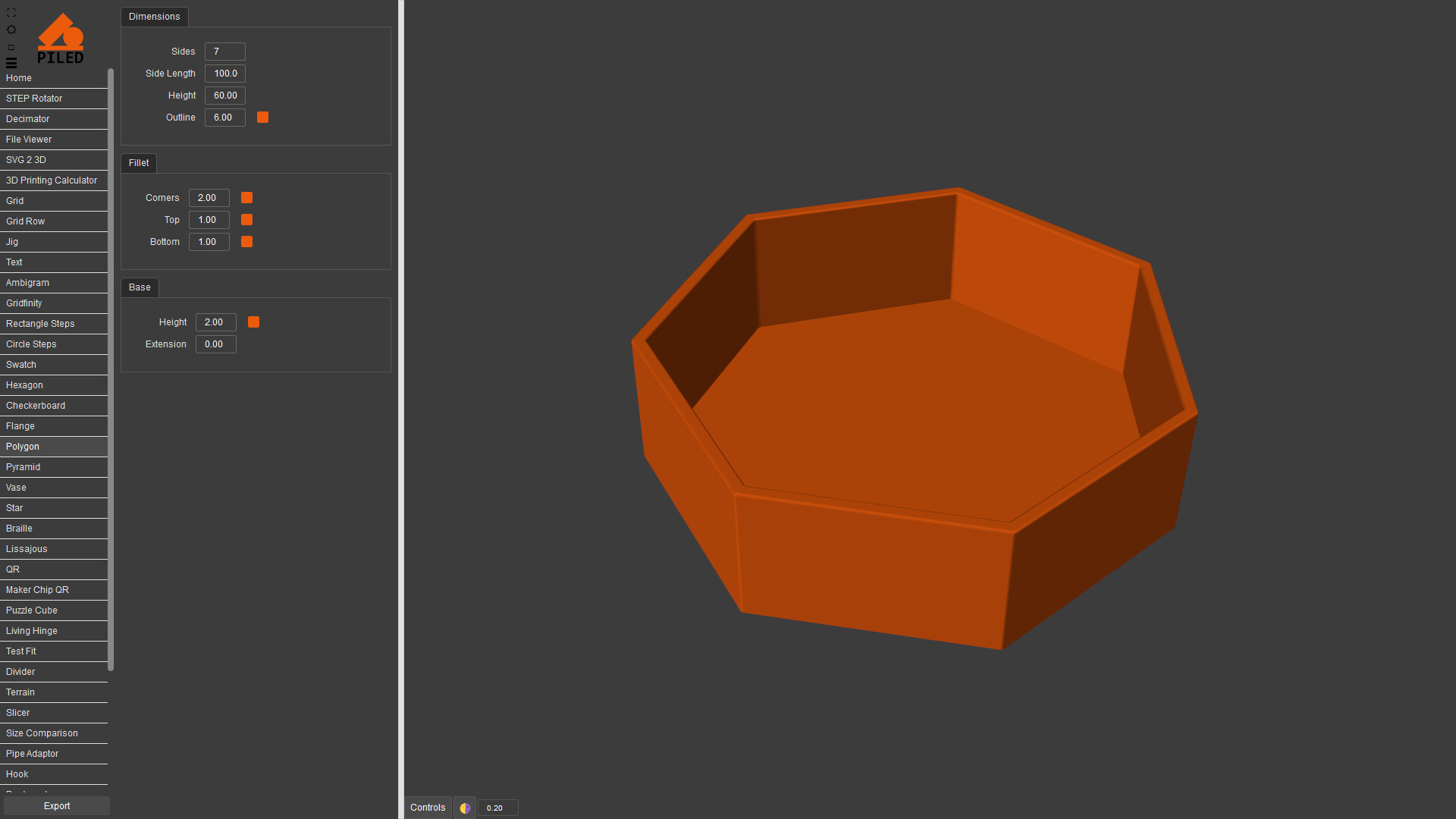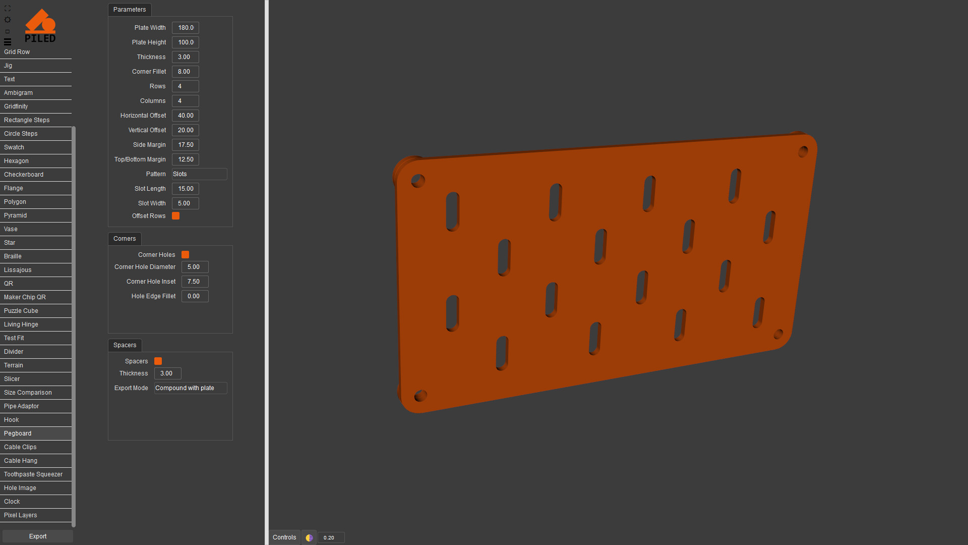 Quickly create complex models then export as STEP, STL & DXF. 3D print, CNC or laser cut your designs made by a wide variety of generators including grid, QR code, vase, living hinge and more.