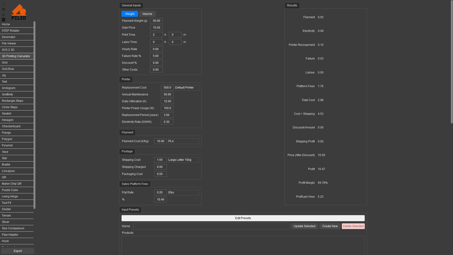 • 3D Printing Calculator