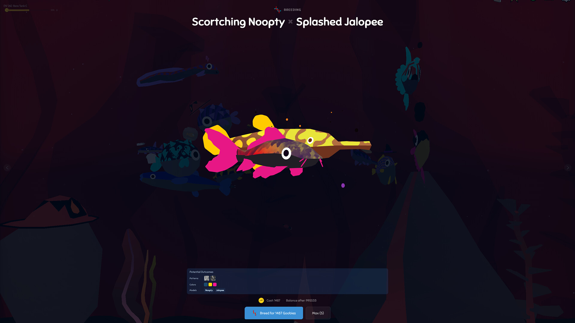 Pair two fish and see what their genetics create. Colors blend, patterns inherit, and rare traits have a chance to pass down,  or mutate into something new. Chase specific combinations or let fate surprise you. The possibilities run deep, and sometimes the result is something nobody has ever seen.