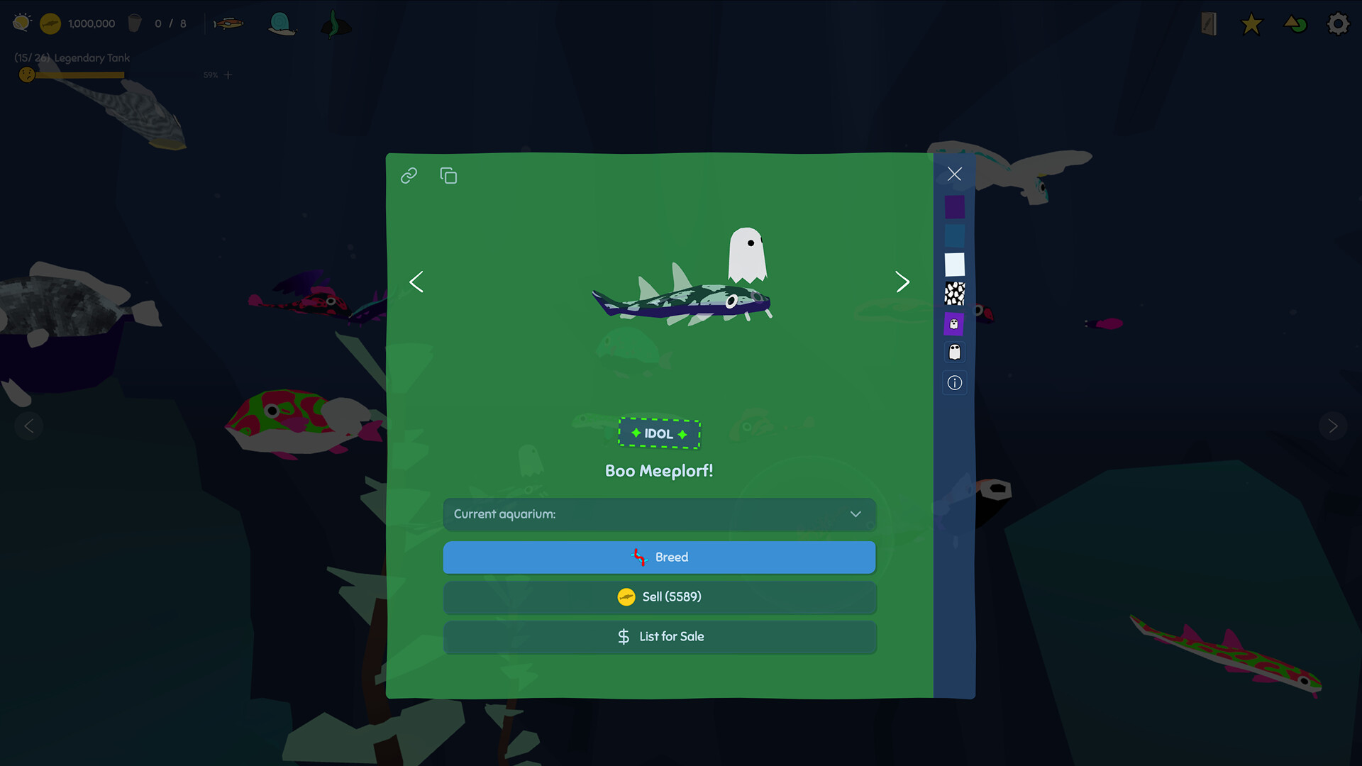 A cute and relaxing collection game where you visit a peaceful pond full of colorful, goofy, and wonderful fish. Explore a never ending combination of species, colors, patterns, and rare traits. Some wear tiny hats! Some sparkle! Some sprout wings! No rush, no pressure, just you and your fish.