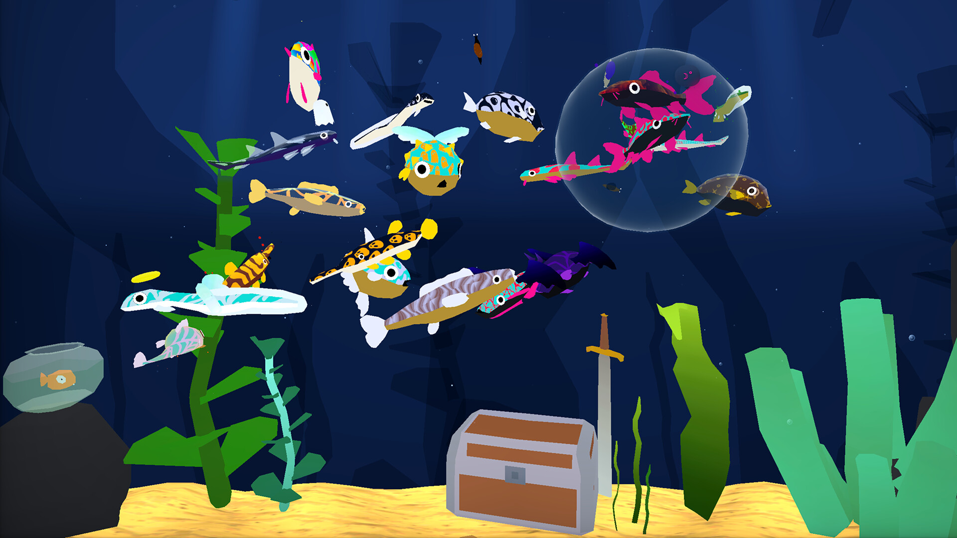 Every fish is unique! A specific combination of species, colors, patterns, and rare traits that may never exist again. Chase tiny-hatted royals, ghostly apparitions, sparkling mutations, and fish that defy explanation. New traits arrive with the seasons, so there's always something new waiting in the water.
