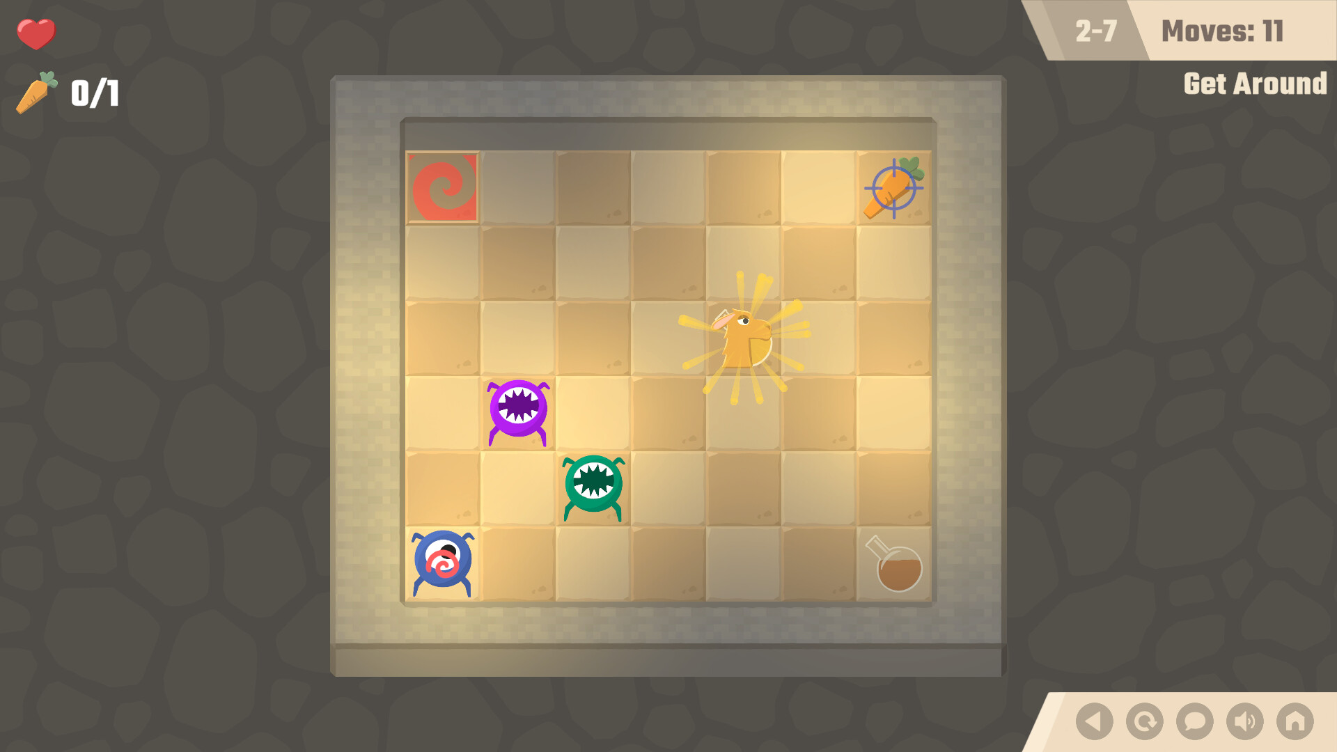 Want some different experience? Behold, boss fights! In boss levels, you don't have to carefully come up with a solution to a puzzle. What you have to do is dodge the boss's rapid attacks, and grab carrots to strike back! In this demo, you can fight one boss.