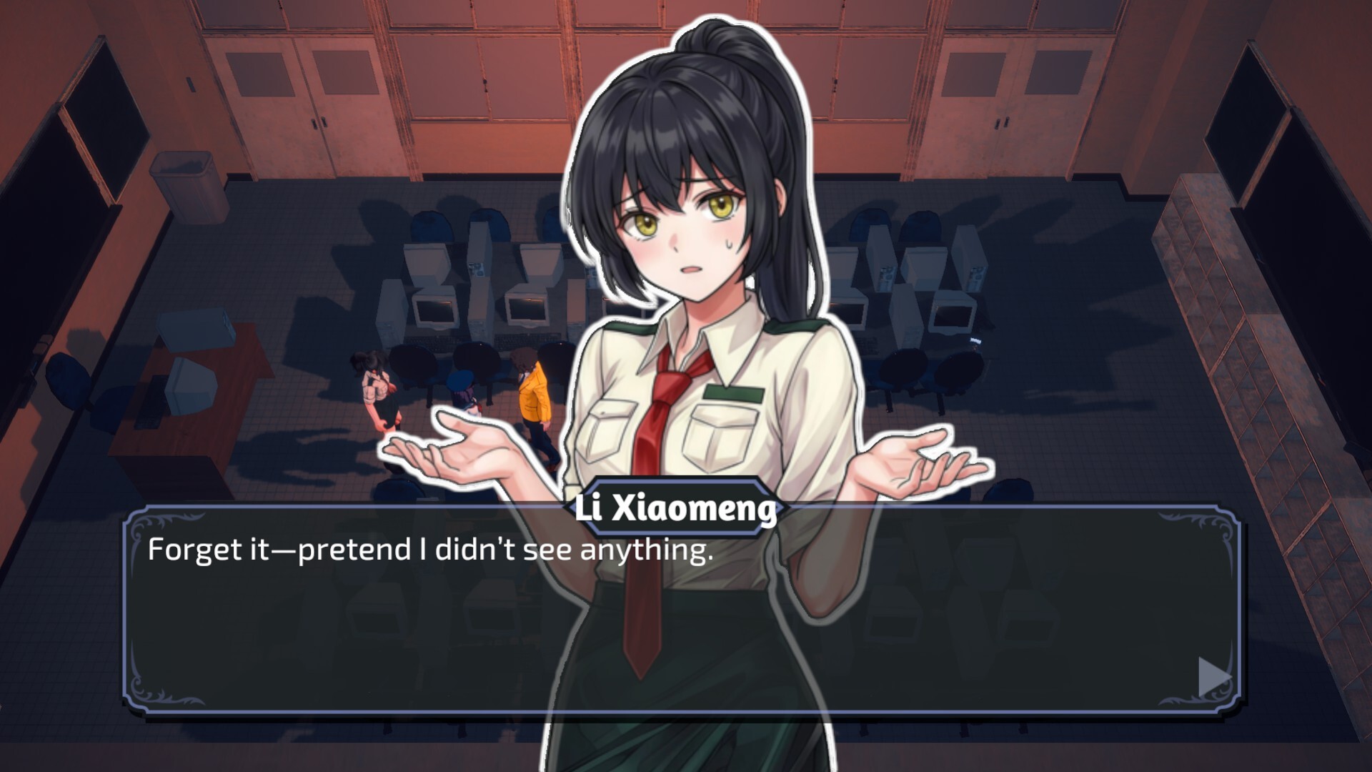 "CORPSE CARNIVAL" is a top-down action-adventure game where you will play as Li Xiaomeng, a first-year student at the "Linge" Military Academy, and escape from a city filled with zombies and monsters alongside "Asami Yuki."