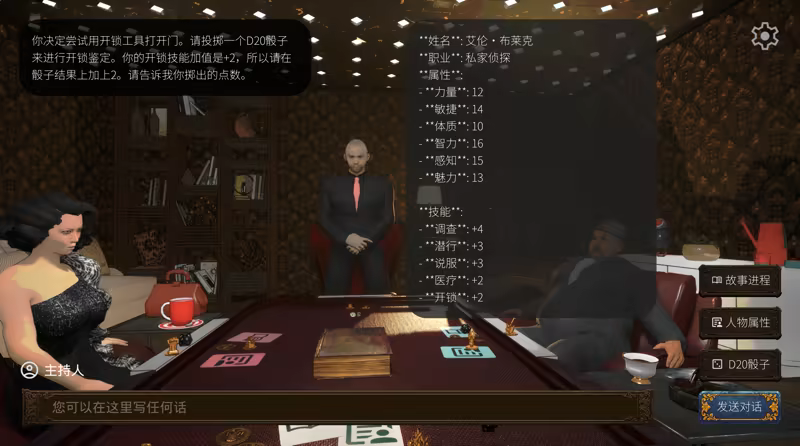 Acesta este un joc TRPG (tabletop role-playing game) imersiv, alimentat de AI. Poți începe o sesiune de joc în orice moment, fără a fi nevoie de pregătire mentală prealabilă sau de citirea manualelor de reguli. Fie că este vorba de sesiuni scurte, super-scurte, de mijloc sau campanii, totul este posibil. DND, COC, pisici, câini, SCP, JOJO – orice dorești să joci, poți începe imediat și să te bucuri de plăcerea jocului de rol, devenind creatorul poveștii!