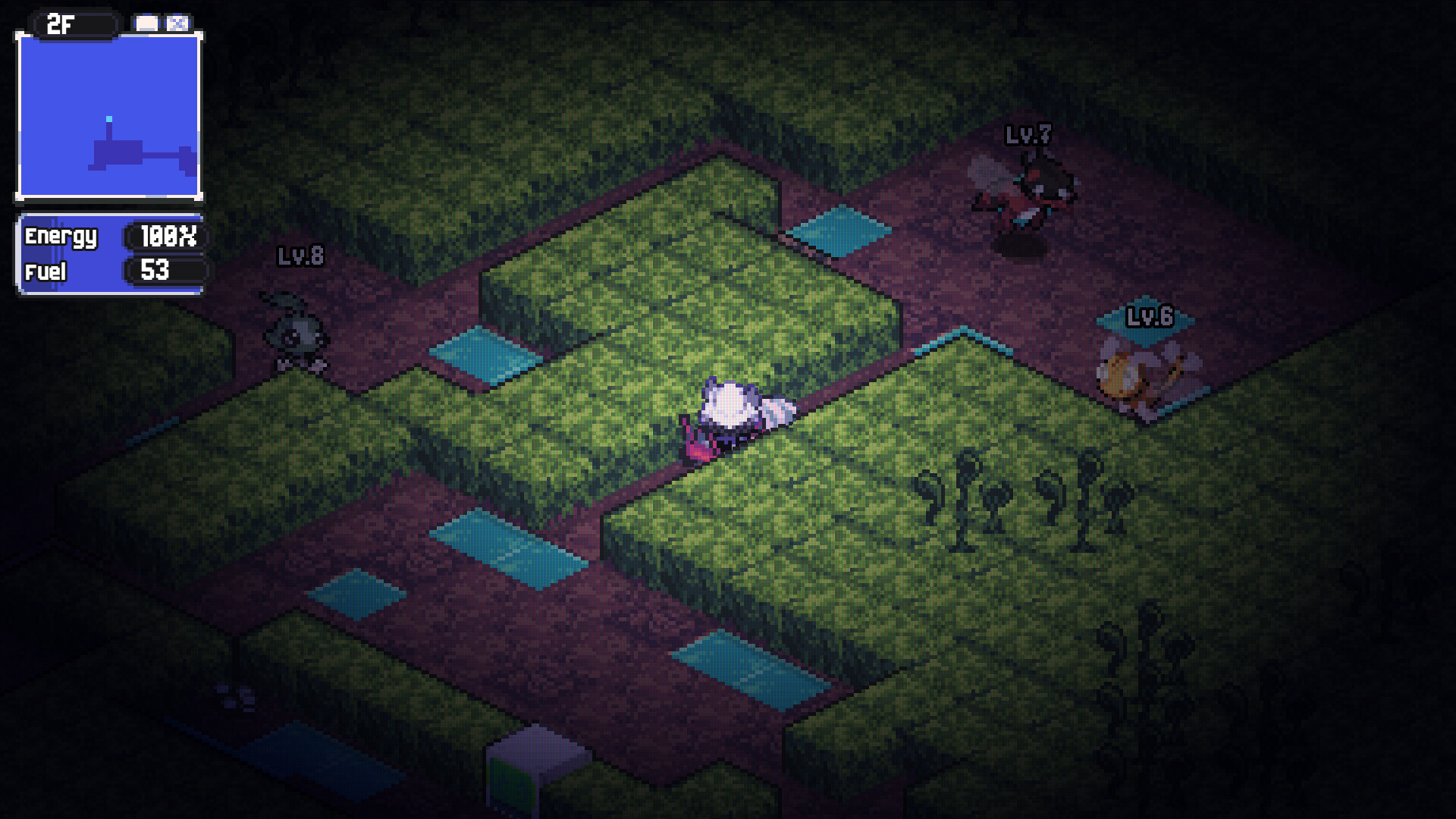 My first concept for Anode Heart, back in early 2020, was actually a top-down shooter where you play as a "pacifier" who needs to descend down into the virtual systems, pacify bugged out creatures and rescue system-stuck sentients. I soon realized that a monster tamer game is something I'd enjoy playing and making a lot more, but the lore and the gritty setting of that first concept remained in the back of my mind.