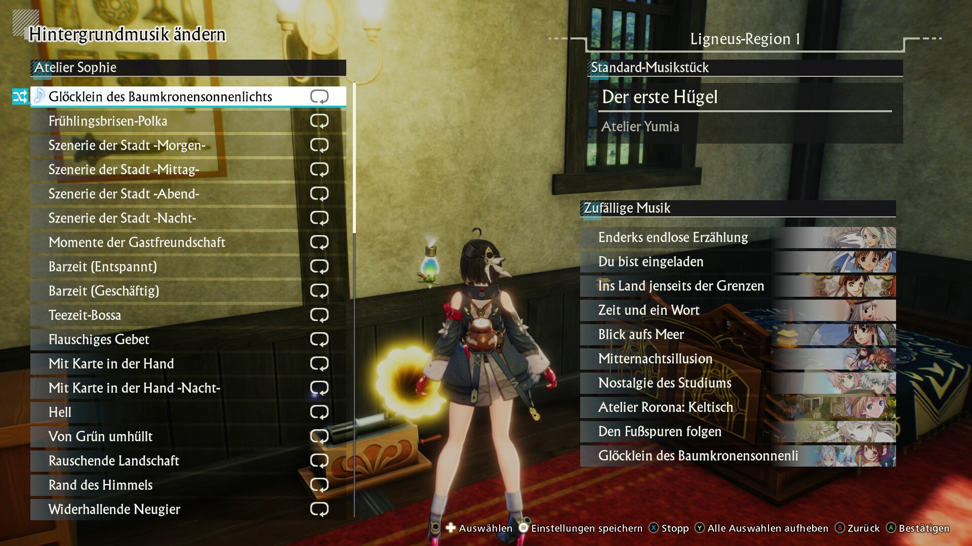 Hinweis: Dieser Inhalt wird für einige Sprachen in Englisch angezeigt. Das Hintergrundmusik-Paket ist zugänglich, nachdem der Basis-Bau-Modus freigeschaltet und ein Grammophon platziert wurde. Ausführliche Informationen findest du auf der offiziellen Website von Atelier Yumia.