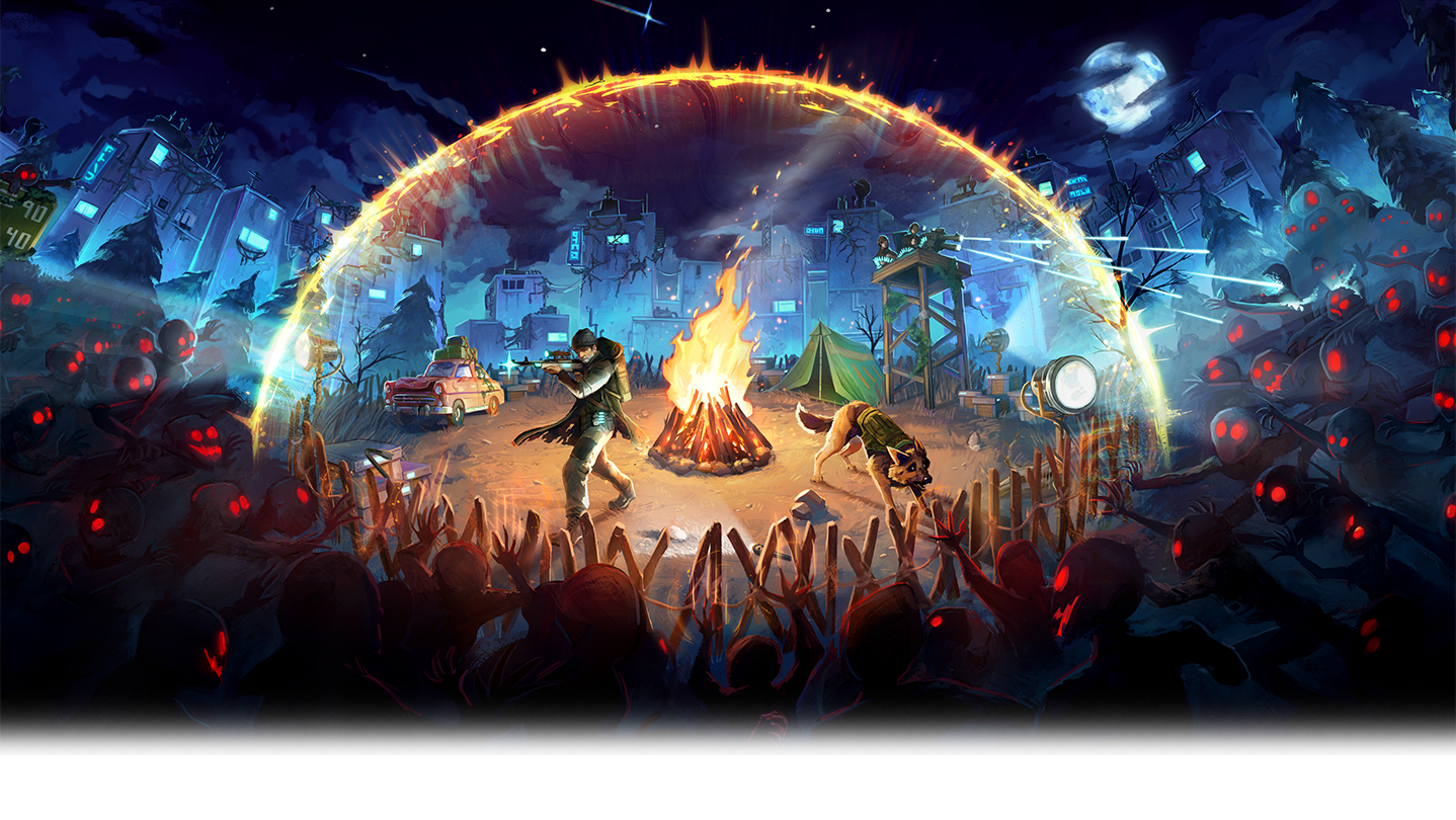 When night falls, they come. Hordes of relentless creatures, drawn to the light of your fire, rushing in from all sides. Armed with an arsenal of unique weapons, you must hold the line. Modify your guns, unlock perks, unleash devastating abilities, because if the fire dies… so do you.
