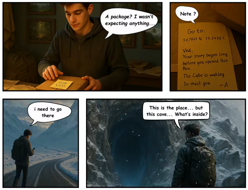 The First Half of Chapter 1 – Begin your journey as Ved, an ordinary man who stumbles upon an ancient cube that changes his reality forever.