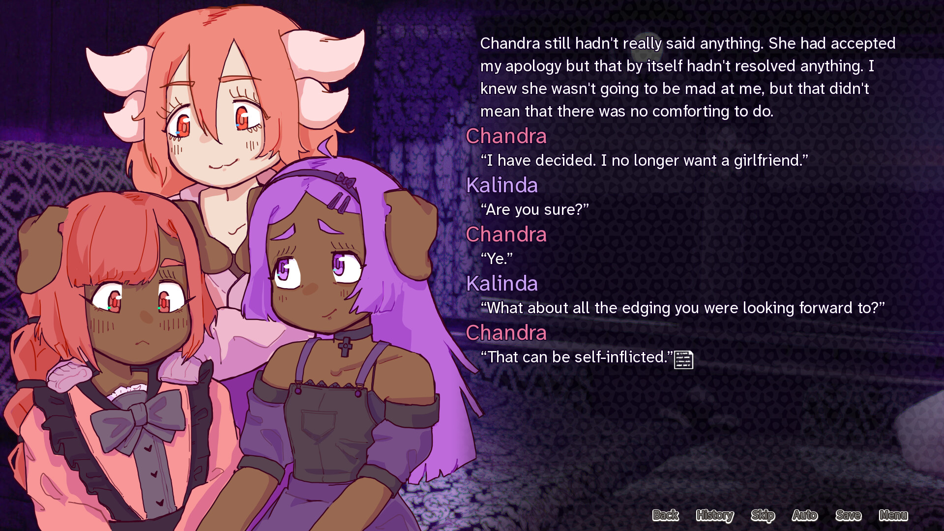 • Scripting improvements left and right! These lil' dorks are coming alive with Ren'Py magic!!