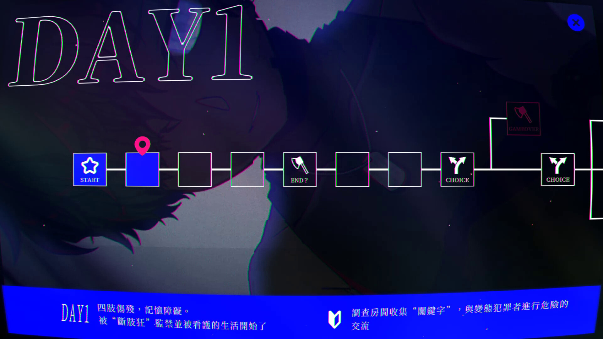 在體驗版中,可以玩到監禁護理生活開始的“Day1”的小故事。