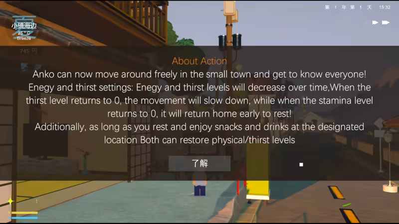 In the game, need to pay attention to your physical strength and thirst level, which can be supplemented by consuming food and drinks. Otherwise, you can only go home early to rest!