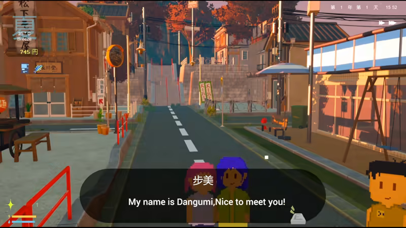 This is a relaxing 3D Japanese-style rural simulation business game! Your goal is to earn money by catching insects, fishing, picking flowers,and other activities while enjoying rural life. Use this money to buy stalls in the town, attract customers, and launch the town revitalization plan