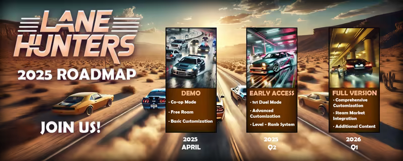 “For the full release, we plan to significantly expand Lane Hunters by introducing comprehensive vehicle customization, additional racing modes, more maps, and full Steam Market integration. These enhancements and features are intended to enrich the overall player experience, but their scope will ultimately depend on community feedback during Early Access.”