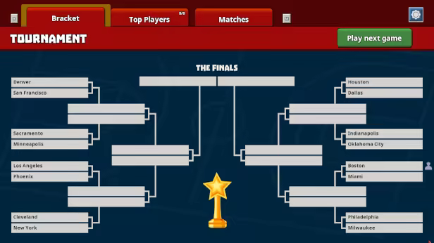 Shoot threes, slam dunk, block opponent shots and steal the ball. Rebound and run fast breaks. Call timeouts and substitute players. Every basketball action is a card. Manage the time remaining on the game clock. Win 4 games in a row to become a champion!