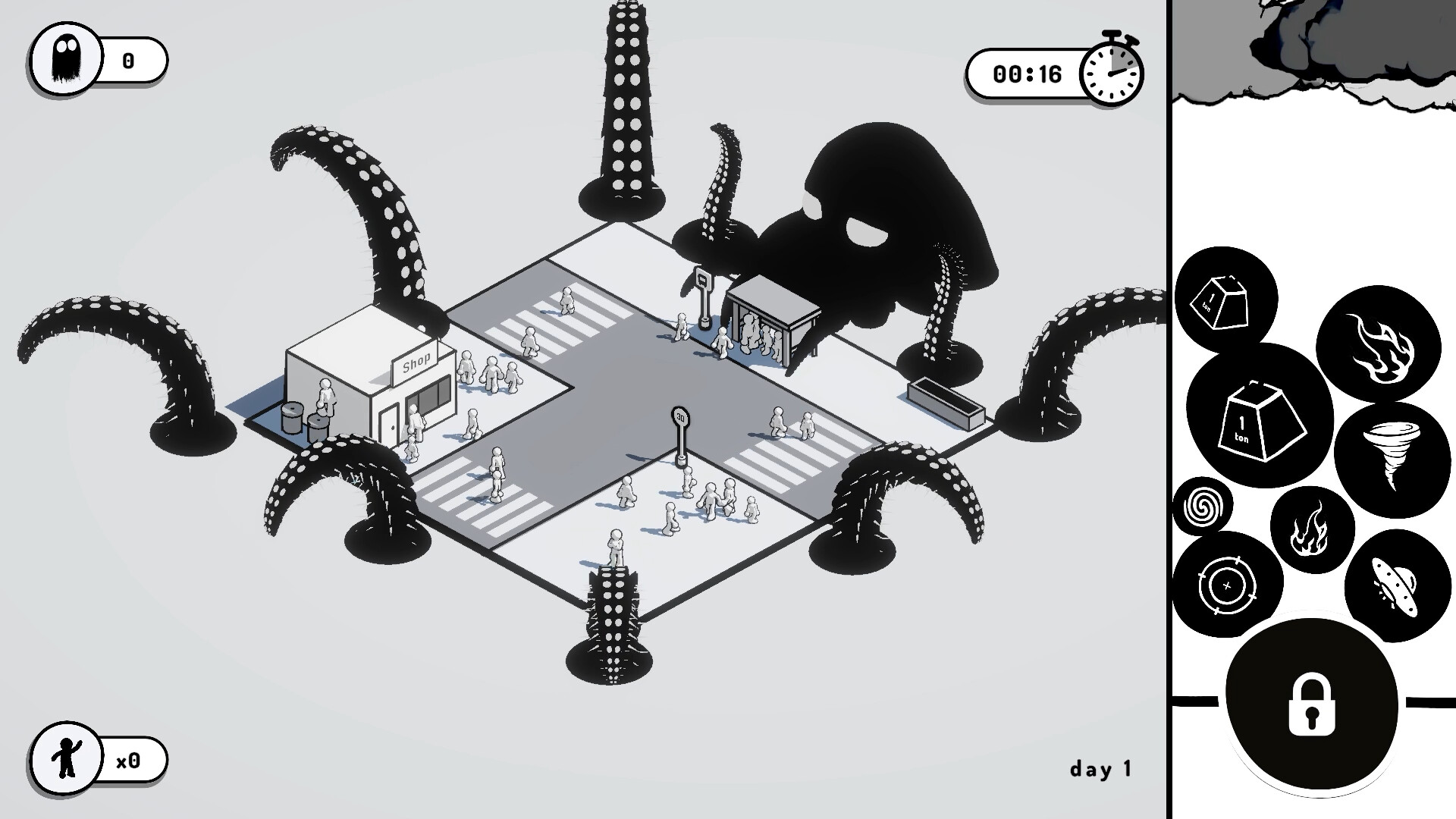 Każdy nowy dzień zaczyna się z pewnymi mocami i limitem czasu (czas działa inaczej dla Bogów, wiesz?) Musisz wybrać swój Boski Akt i raziś niewiernych w świecie poniżej, zanim czas się skończy. Nawet dla Boga sprawy nie zawsze są tak łatwe, jak się wydają. Kapłani mogą chronić tych wokół siebie. Wierni wyznawcy mogą stanąć na drodze do czystego zabójstwa. Niewinne szczenię może wyjść wprost przed twoje ogniste tornado.
