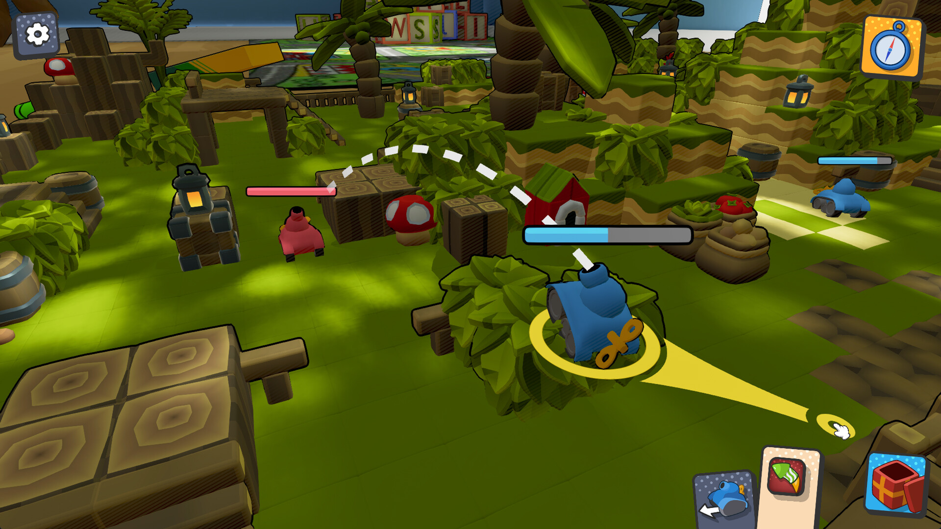 Each player commands a squad of toy tanks, planning movements and attacks every turn. Anticipation and precision are the keys to victory.