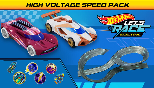 Turn up the power and leave your rivals in the dust! The High Voltage Speed Pack amps up the action with futuristic rides, electrifying track parts, and bold new customization options.