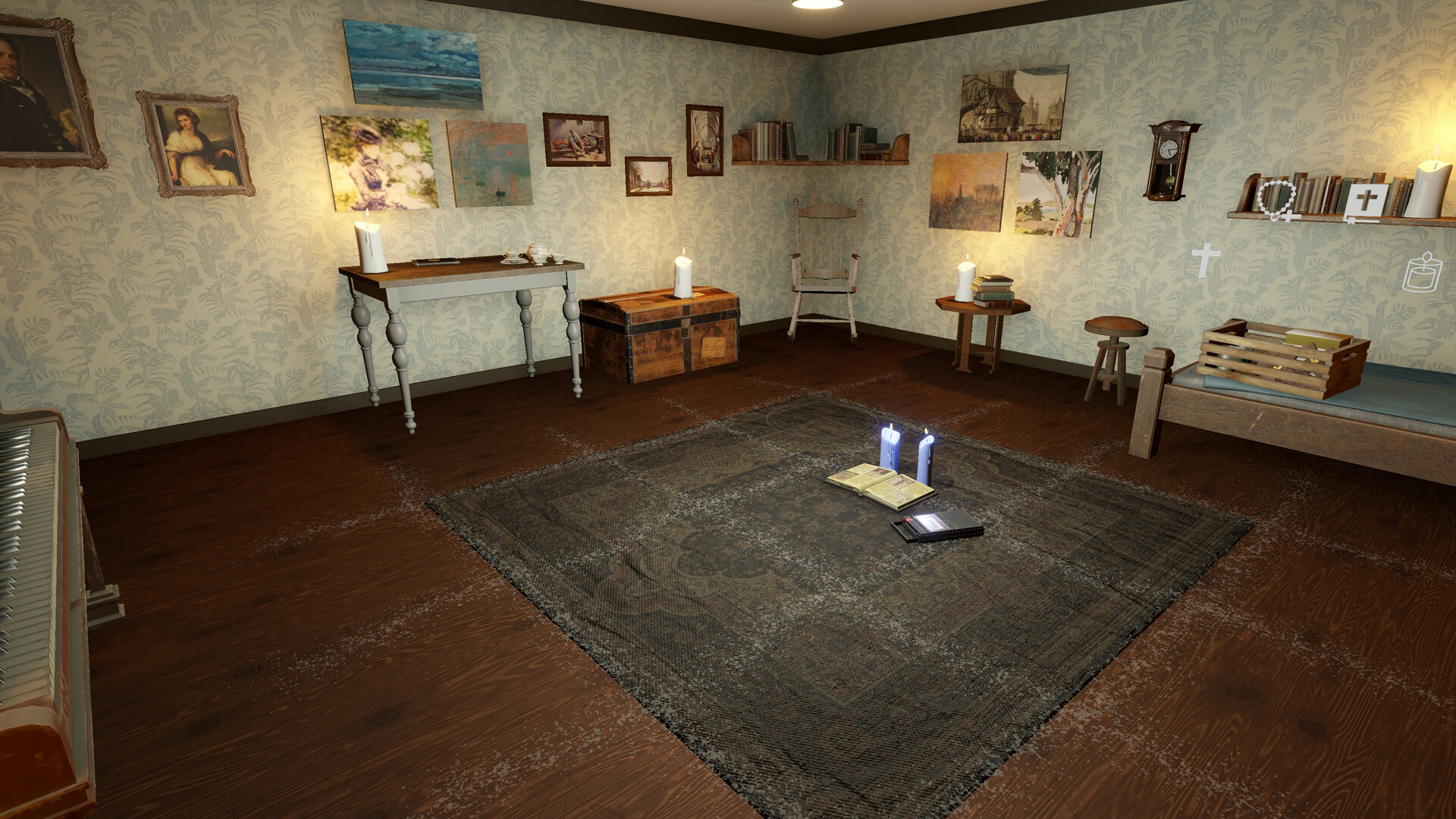 You are Father Herman Goldie, summoned by the Ranford family to cleanse their den of its former occupant, the late Edna Maney, whose body was found under mysterious circumstances in the attic weeks ago. Though her remains have been removed, something else still lingers.