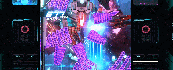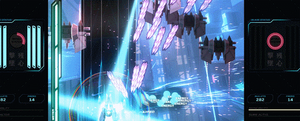 Turn the table on your enemies with powerful screen clearing energy blade attacks. Master the blade and see your score reach stratospheric heights!
