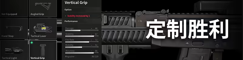 盡情發揮創意!透過自由度高的武器自訂系統,可打造符合自身遊戲風格的完美槍械。後座力、裝彈速度、外觀等各種槍械零件皆能根據個人需求進行自訂。藉由自訂武器,即便是相同的武器也能帶來獨特的戰鬥體驗,享受樂趣無窮的戰鬥。用個人專屬武器在戰場上獨領風騷吧!