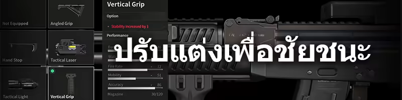 ปลดปล่อยความคิดสร้างสรรค์ที่มีผ่านระบบปรับแต่งอาวุธมากมาย ที่จะช่วยทำให้อาวุธปืนตรงกับสไตล์การเล่นของคุณ! เลือกชิ้นส่วนต่างๆ ของปืน แรงถีบ ความเร็วการบรรจุกระสุน รูปลักษณ์ และอื่นๆ ได้ตามใจชอบ การปรับแต่งอาวุธปืนสามารถสร้างประสบการณ์การต่อสู้ที่แตกต่างได้ แม้จะเป็นอาวุธชนิดเดียวกันก็ตาม คุณจะได้เพลิดเพลินไปกับสมรภูมิที่หลากหลายและระทึกใจ จงยืนตระหง่านในสมรภูมิรบพร้อมอาวุธคู่ใจของคุณเพียงคนเดียว!