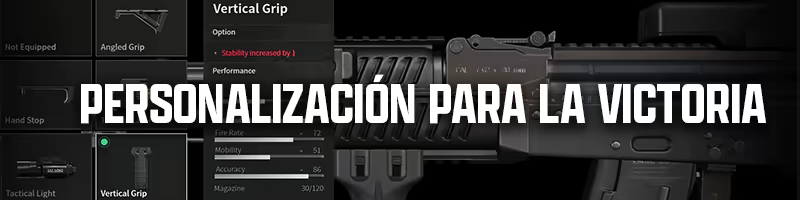 Desata tu creatividad con el exhaustivo sistema de personalización de armas, que te permitirá construir el arma perfecta para tu estilo de juego. Personaliza varios aspectos a tu gusto, incluyendo el culatazo, el tiempo de recarga, la apariencia y más. Mediante la personalización de armas, hasta la misma arma puede ofrecer experiencias de combate diferentes. Así podrás disfrutar de batallas más diversas y emocionantes. ¡Destaca en el campo de batalla con un arma hecha a tu medida!