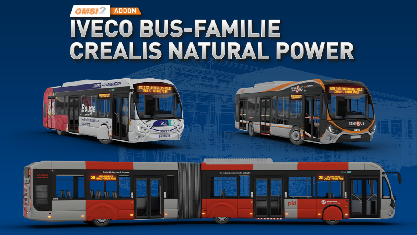 Dive into the ultra-realistic world of the IVECO Bus fleet with the IVECO Bus Family Crealis Natural Power extension for OMSI 2!