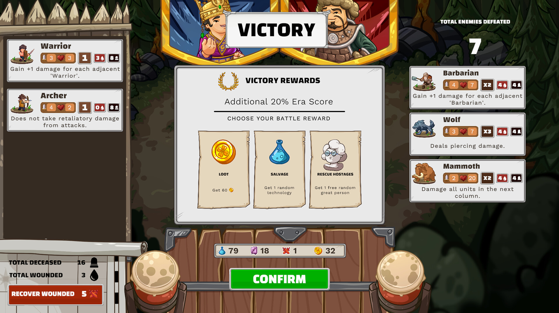 In order to beat your era score and survive through time, spin the slot machine, get resources, and combine spin results with the technologies you have discovered. Uncover new technologies, find out great persons, construct amazing wonders, and build your deck through turns. Uncover all hidden leaders and decks as you progress. You’re going to need every edge you can get in order to reach the next era for your people and to secure victory!