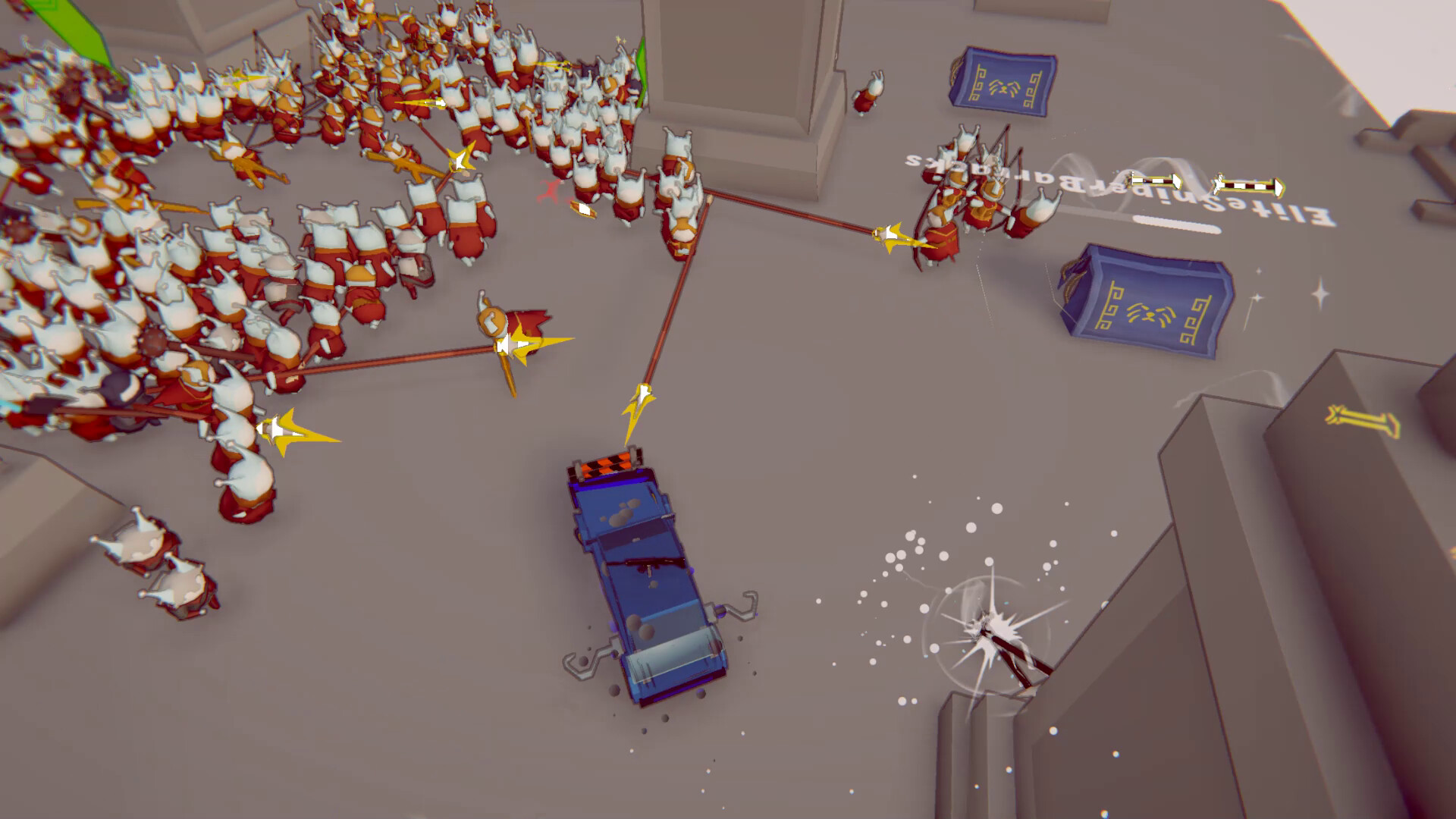 Search & destroy thousands of coordinated enemies in this new physics-based Bullet-Hell Open-World Sandbox! Build the ultimate war machine: weld any weapon to any part of your car — saw on the hood, turret on the roof, rocket launchers on sides. Extremely optimized, moddable day one.