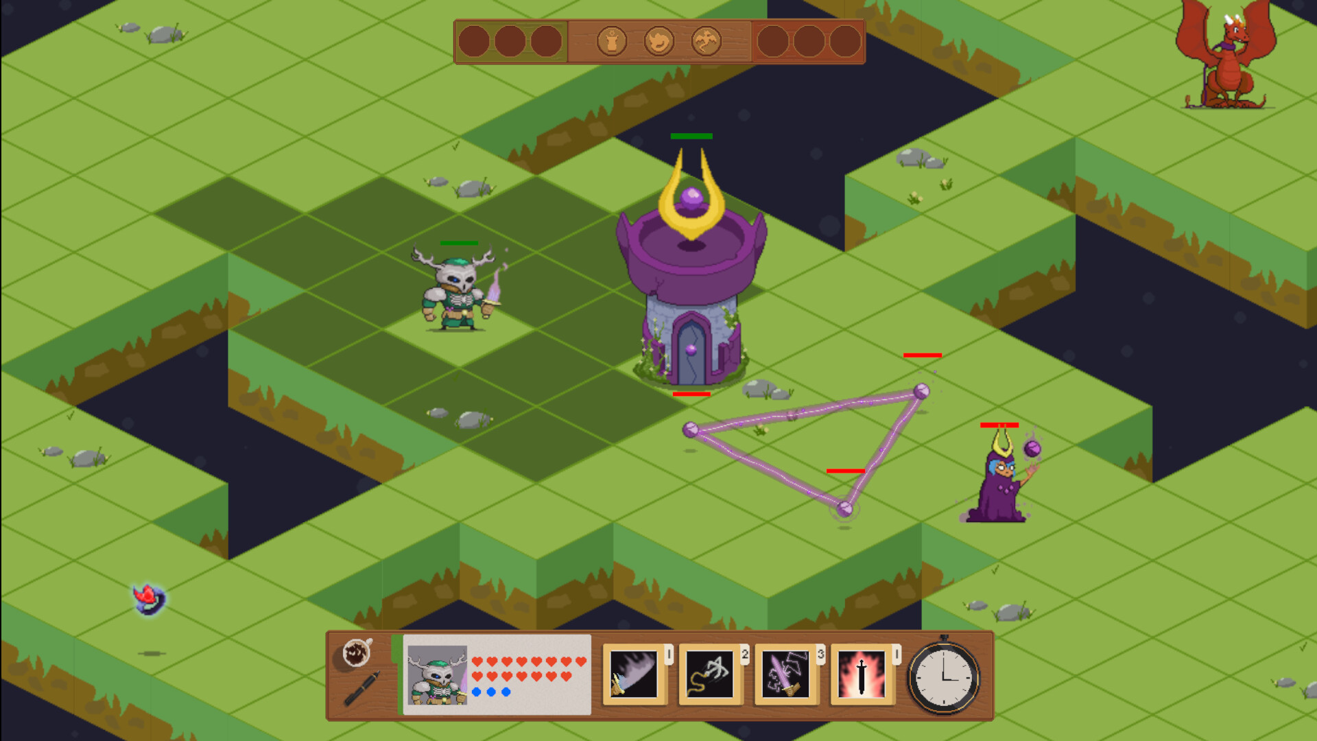 • Sistema de puntos de acción y movimiento: cada turno disponés de puntos de movimiento para desplazarte y puntos de acción para ejecutar habilidades.