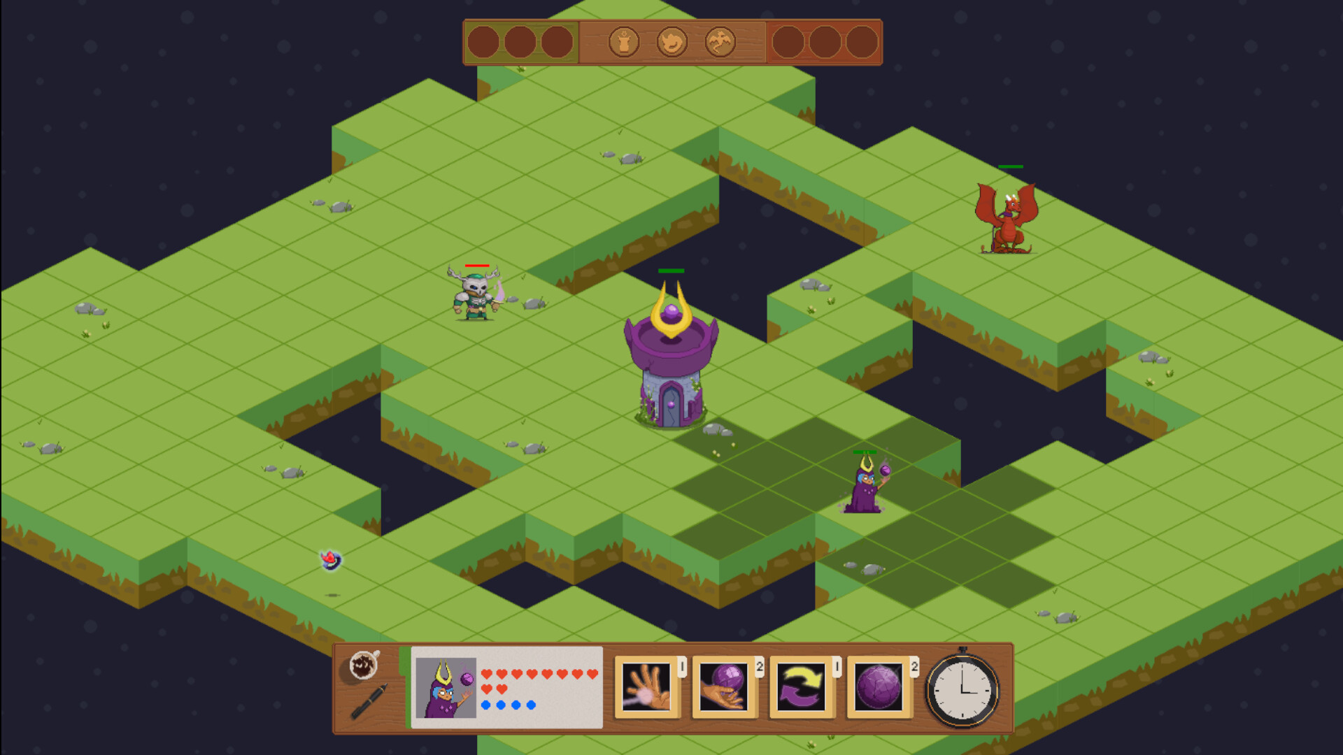 • Batallas por turnos en un tablero táctico: mové a tus personajes durante tu turno y usá sus habilidades para conquistar bienes o derrotar al enemigo.