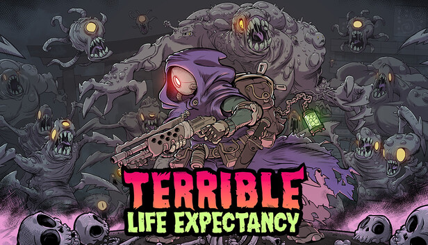 Terrible Life Expectancy is a roguelite top-down shooter with Survivors elements. Fight absurd hordes of mutants for the amusement of an unseen bloodthirsty audience and only inherit all your upgrades as long as someone in your family is still breathing... or at least twitching.
