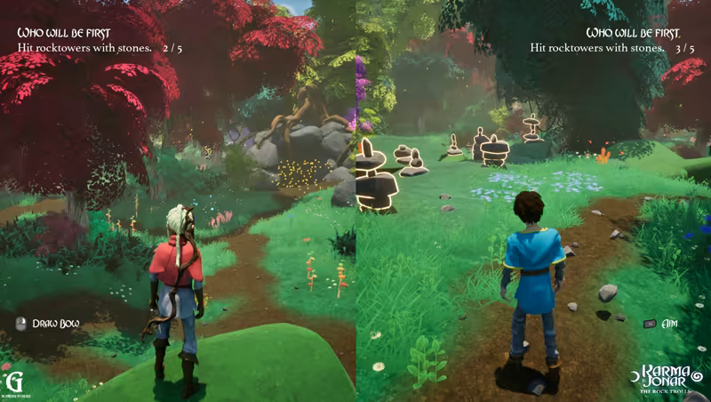 『カルマ&ジョナール:ロック・トロールズ』で魔法の冒険を体験しよう。ファンタジー協力プレイゲームである本作では、あなたと友達が勇敢な子どもたちカルマとジョナールとなってプレイします。彼らの家族は宿敵同士ですが、闇の力からグリメリアの地を救うために協力しなければなりません。