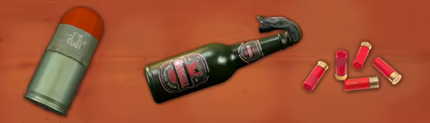 Molotov cocktails and incendiary ammo – The Molotov cocktail is perhaps the simplest weapon that can call itself a grenade. Nothing more than a breakable bottle of flammable liquid with a ‘fuse’ replaced by a burning rag. It is cheap, simple and highly effective. Enjoy with jalapeño poppers. Other than that, we've also taken the liberty of adding incendiary ammo. Enjoy the Spirited Dragon's Breath rounds and the spicy Incendiary rounds.